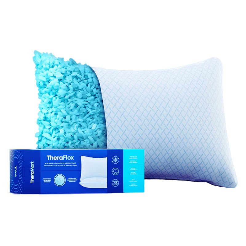 TheraFlox combina copos de memory foam infusionado con gel + fibras de poliester, logrando una fórmula agradable al tacto, confortable y fresca para dormir. ¡Es la típica almohada de la que todos gustan! Los que duermen boca arriba, boca abajo o de lado. Los copos de memory foam brindan un soporte extra confortable, evitando el hundimiento y la deformación con el uso.