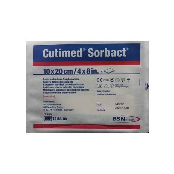 Apósito absorbente diseñado para el tratamiento de heridas infectadas o contaminadas. Su tecnología sorbact capta y elimina bacterias y hongos, favoreciendo la cicatrización. Este apósito es eficaz contra patógenos resistentes y no genera resistencia bacteriana. Se utiliza en heridas limpias, contaminadas, colonizadas o infectadas., como heridas quirúrgicas y úlceras por presión. Además, es seguro para su uso en niños y mujeres embarazadas, y se puede dejar colocado por 7 días.